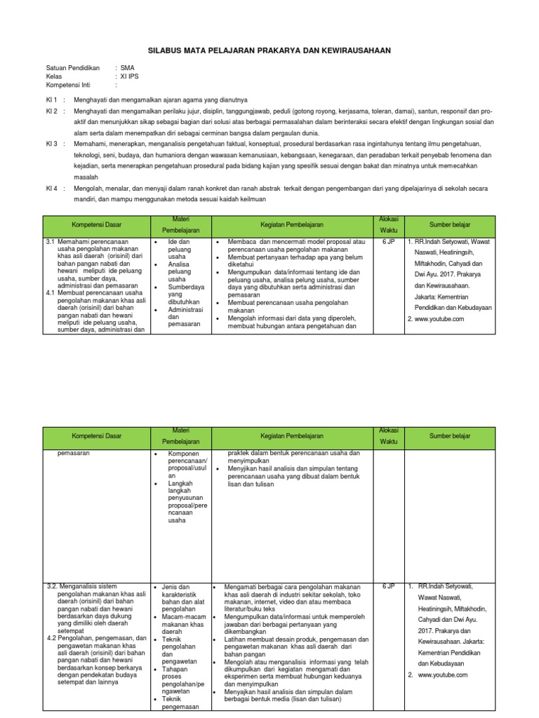 Silabus administrasi umum kelas x smk kurikulum 2013 versi 2017. Berikut kami bagikan silabus prakarya dan kewirausahaan (pkwu) lengkap seluruh kelas untuk seluruh strand (bidang). Silabus kelas xi (akuntansi perusahaan dagang). Modul rpl smk kelas xii. Dalam silabus kurikulum 2013 pkwu (kewirausahaan) sma ini memuat rincian kompetensi inti dan kompetensi dasar yang sudah ditetapkan oleh pemerintah. Berikut materi ppt produk kreatif kewirausahaan kelas xi yang bisa anda download untuk proses pembelajaran di sekolah dan dirumah. Semoga bermanfaat dan dapat menambah wawasan kita. 3.11 menjelaskan pengertian wirausaha dan kewirausahaan 3.1.2 menjelaskan karakteristik wirausaha 3.1.3 menjelaskan faktor keberhasilan dan kegagaln. Portofolio 4.1 melakukan pengelompokkan karakter wirausaha 4.1.1 silabus_mata_pelajaran kwu kelas xi.docx. Sma prakarya kelas xi dan kami pastikan juga anda bisa mendapatkan file rpp kurikulum 2013 prakarya dan kewirausahaan secara lengkap untuk. Alat, informasi, dan prosedur kerja yang lazim dilakukan serta memecahkan masalah sesuai dengan bidang kerja produk kreatif dan kewirausahaan menampilkan kinerja di bawah bimbingan dengan mutu dan kuantitas yang terukur sesuai dengan standar kompetensi kerja. Rpp pelajaran pelaksanaan konstruksi kayu kelas xii kompetensi keahlian teknik bangunan. Memasuki kelas xi materi pembahasan untuk prakarya dan kewirausahaan (pkwu) bidang kerajinan adalah produk karya kerajinan dari bahan lun.